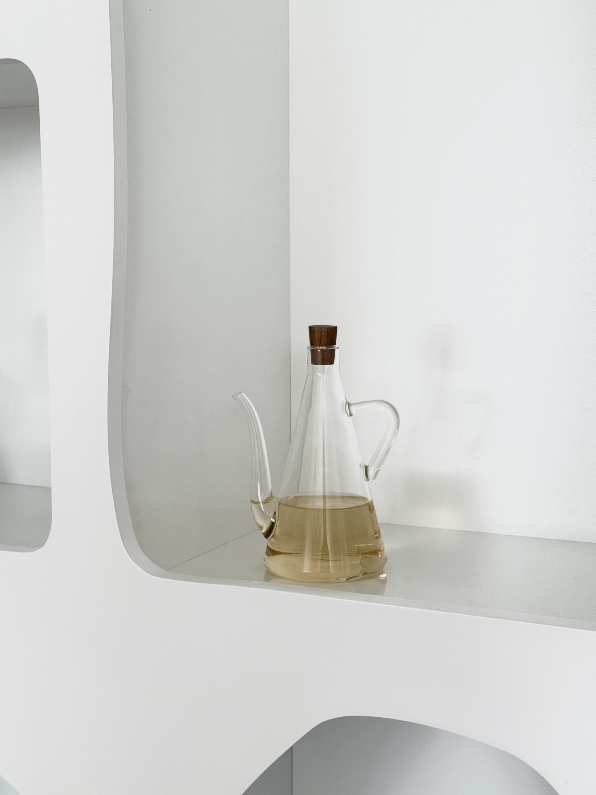 Zarafetin ve işlevselliğin kusursuz birleşimi olan bu 500 ml hacmindeki cam yağdanlık, mutfağınıza estetik bir dokunuş katıyor. İnce el işçiliğiyle tasarlanmış, şeffaf cam gövdesi sayesinde içindeki sıvının berraklığını ve doğallığını gözler önüne seriyor. Ahşap tıpası, doğanın sıcaklığını yansıtarak rustik bir zarafet sunarken, şık ve ergonomik tutma sapı, kullanım kolaylığı sağlıyor. İnce ve zarif ağzı, yağı damlatmadan akıtmanıza yardımcı olurken, her detayında sadelik ve şıklık hissini barındırıyor. Sofralarınıza ve mutfak tezgâhlarınıza asil bir dokunuş katan bu yağdanlık, hem dekoratif hem de işlevsel bir obje olarak öne çıkıyor.