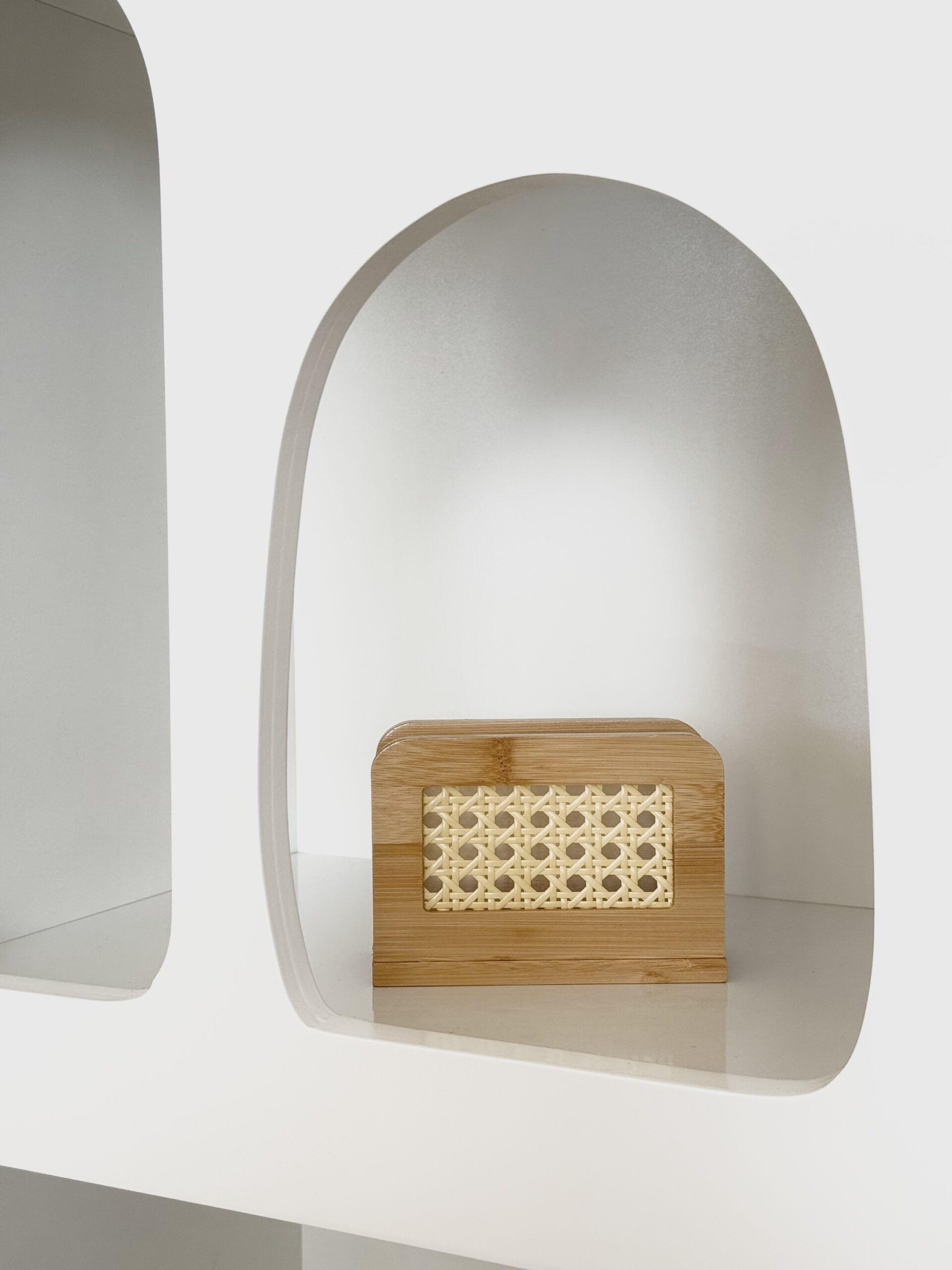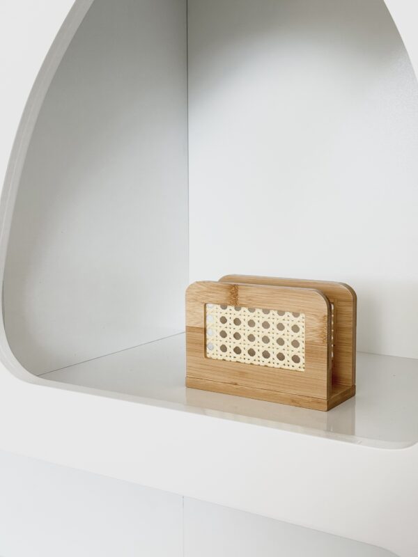 Bu zarif bambu hazeran peçetelik, doğal dokusuyla sofranıza sıcak bir şıklık katıyor. Hazeran örgü detayları, geleneksel ve modern tasarımın kusursuz bir harmanını sunuyor. Estetik duruşu kadar işlevselliğiyle de öne çıkan bu parça, her ortamda göz alıcı bir aksesuar olmaya aday.