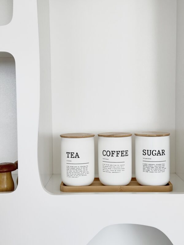 Bambu Standlı 3’lü Beyaz Cam Kavanoz Seti