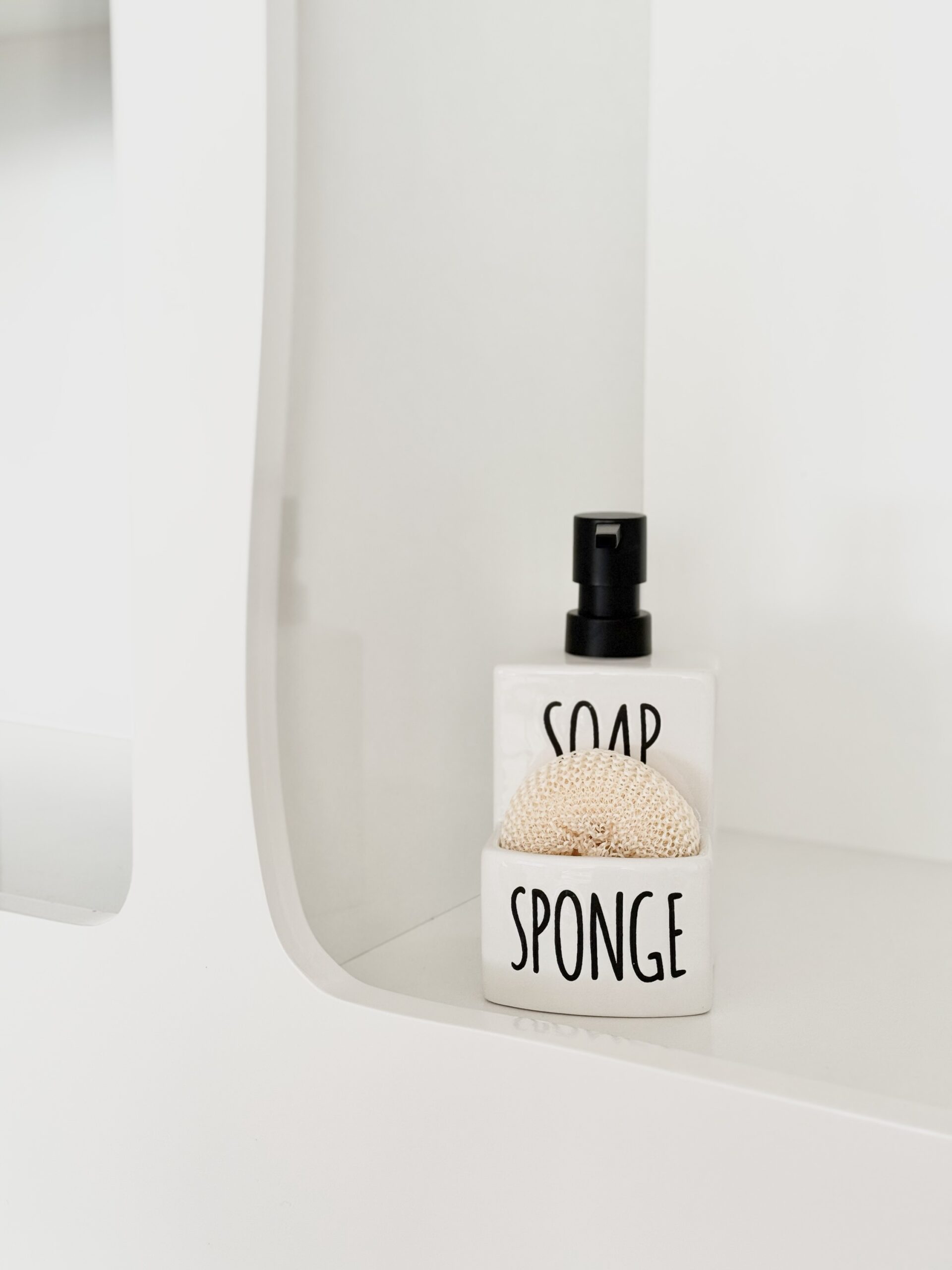 Zarif tasarımıyla mutfak ve banyolarınıza şıklık katan bu seramik sıvı sabunluk, fonksiyonelliği ve estetiği kusursuz bir şekilde bir araya getiriyor. Modern hatları ve göz alıcı beyaz rengiyle sade ama sofistike bir duruş sergilerken, üzerinde yer alan “SOAP” ve “SPONGE” yazıları ona hoş bir vintage dokunuş katıyor. Kullanışlı sünger bölmesi sayesinde hem düzeni korumanıza yardımcı olur hem de elinizin altında her an hijyen sağlar. Dayanıklı seramik yapısıyla uzun ömürlü bir kullanım sunan bu şık aksesuar, yaşam alanlarınıza zamansız bir zarafet getiriyor!